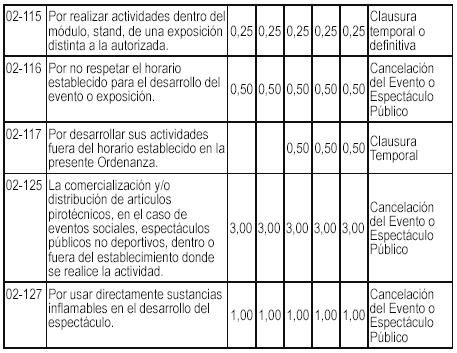 Segunda.- Modifíquese la Ordenanza Nº 376/MM que aprueba el Régimen de Aplicación de Sanciones Administrativas de la Municipalidad de Miraflores, con respecto al Cuadro de Infracciones y Sanciones Administrativas, numeral 02 denominado Comercialización, modificando la conducta infractora de los códigos 02-115 , 02-116, 02-117,02-125 y 02-127 con los siguientes textos: